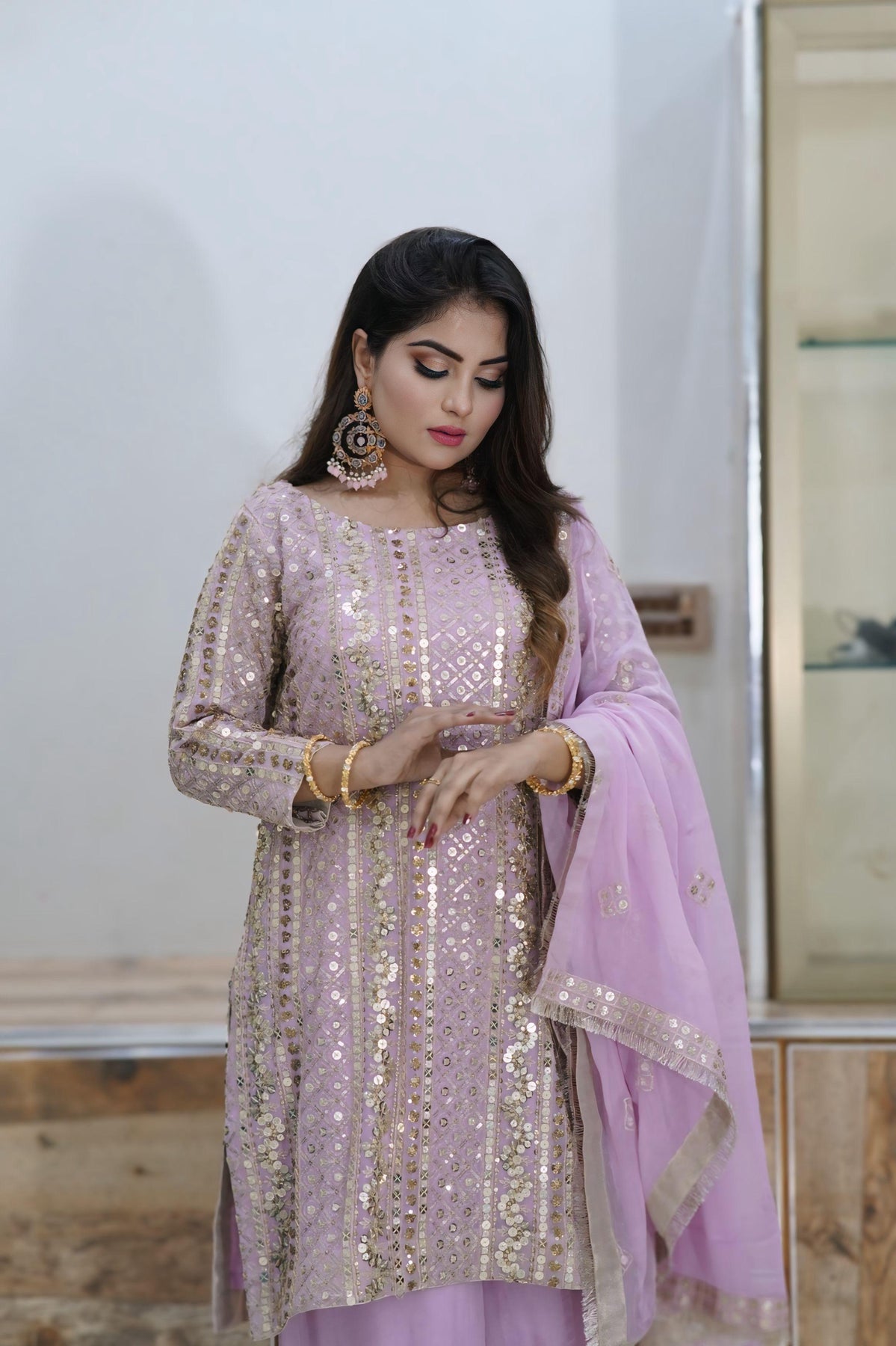 Light Purple Salwar Kameez 3 Piece ( Shafon fabric + Sequence and zaree work )